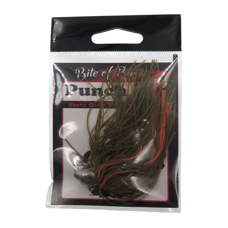 Das Bite Of Bleak Punch Rig ist ein Bullet-Gewicht aus Tungsten, das mit einem Silikon-Rock ausgestattet ist, um das Profil zu verbessern und ihm Bewegung zu verleihen. Diese Art von Senkblei wird verwendet, um durch dichten Oberflächenbewuchs zu „stanzen“. Sie montieren diesen Senkblei vor Ihrem Offset-Haken.