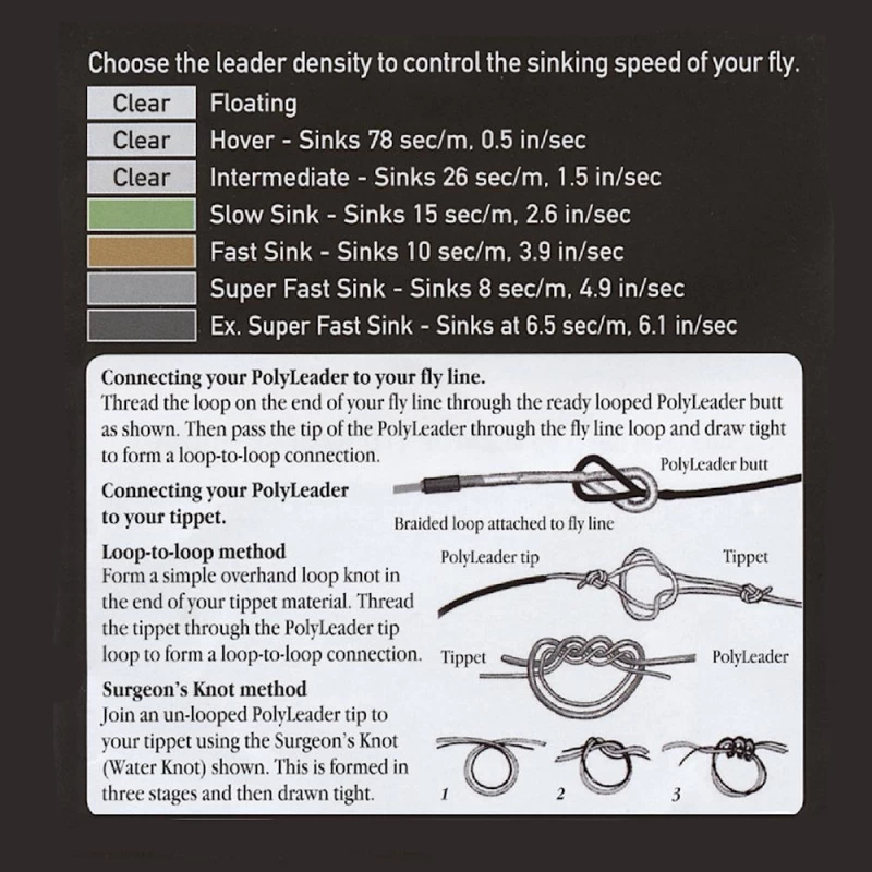 Airflo Polyleader haben außerdem eine integrierte Schlaufe am dicken Ende, die einen schnellen Austausch ermöglicht. Sie sind langlebig, haben ein geringes Memory und einen eingebauten Stoßdämpfer. Polyleader sind in verschiedenen Längen und Varianten erhältlich, die für unterschiedliche Angelarten geeignet sind.Forelle – Allround-Köder und unser meistverkaufter. Rollt und dehnt sich gut, auch bei etwas größeren Fliegen und längeren Pelerinen. Reißfestigkeit 6 kg.Polyleader 5 Fuß – Taffs zum einhändigen Angeln auf Forelle, Regenbogenforelle, Meerforelle und Lachs. Leicht auszuwerfen, leicht aus dem Wasser zu heben und leichtgängig, egal ob Sie tief oder flach angeln. Ein POLYLEADER bietet Ihnen die Möglichkeit, abwechslungsreicher zu fischen. Die 5-Fuß-Serie kann Würfe ausbalancieren und Taff-Spitzen bis zu 12 Fuß umdrehen.