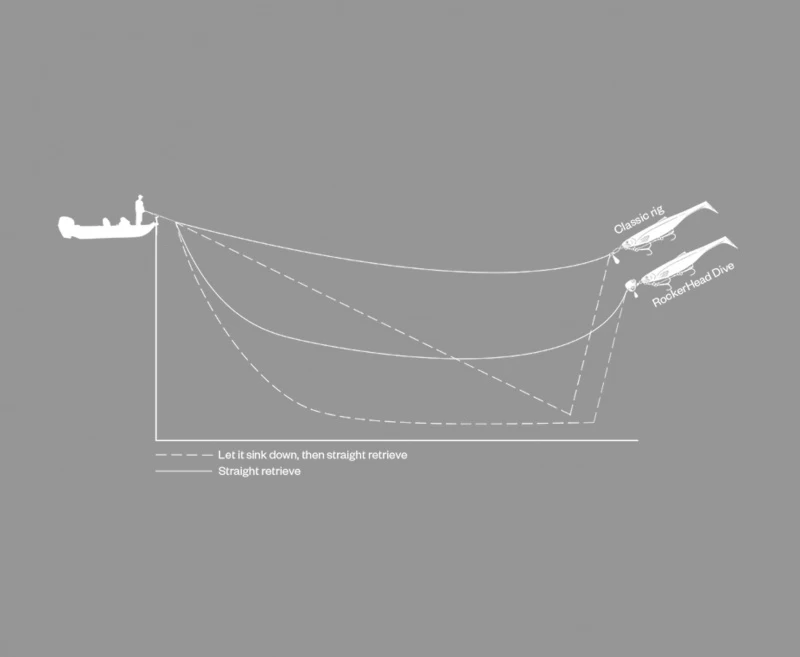 Der RockerHead Dive Stinger wurde für langsames bis schnelles Einholen entwickelt und erzeugt eine sich nicht wiederholende S-förmige Schwimmaktion mit unvorhersehbaren Sprüngen zur Seite. Eine Aktion, die man bei Weichplastik-Swimbaits bisher nicht kannte. Die Form der Action Lip sorgt außerdem dafür, dass der Köder beim Einholen abtaucht und länger am Boden bleibt, was ihn ideal für das Fischen in größeren Tiefen macht. Das Design erlaubt es Ihnen, zu experimentieren und das am RockerHead angebrachte Gewicht zu verändern oder das Gewicht für langsames Fischen in geringer Tiefe zu entfernen.Der RockerHead Dive Stinger ist mit einem beschichteten Edelstahldraht, BKK 6062 1X SS Haken und einem Zinkgewicht an der Action-Lippe ausgestattet.Größe: L / XLZinkgewicht: 4,5 g / 6,2 gHaken: #1/0+1 / #2/0Passt: 18-23 cm / 24-28 cm