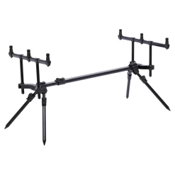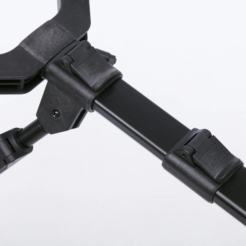 Das Rod Pod ist entwickelt worden, um selbst bei sicher sitzenden Verriegelungsverschlüssen einfach bedient werden zu können. Es kann sowohl in der Länge als auch in der Höhe verstellt werden und bietet eine hervorragende Stabilität in einer Vielzahl von unterschiedlichen Situationen. Die Beine können ebenso in zwei verschiedenen Positionen gesichert werden, damit die Ruten gedreht oder abgesenkt werden können. Dank der eingebauten Ausrichtungsmanschetten ist die präzise Ausrichtung der Buzzer Bars sowie der Bissanzeiger und der Rutengriffe ein echtes Kinderspiel. Das Rod Pod kann auch im traditionellen Torpfostenstil (Goal-Post-Style) benutzt werden, indem das verstellbare Bein direkt an den Buzzer Bars befestigt wird.